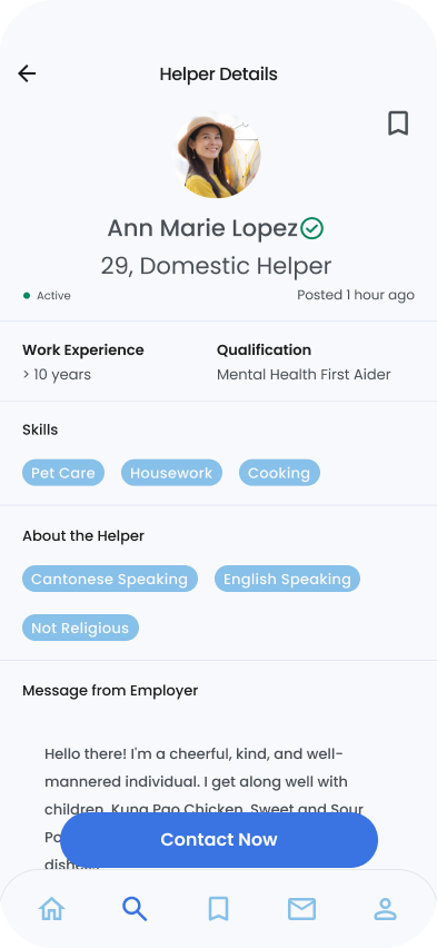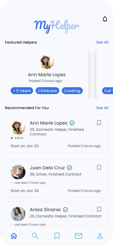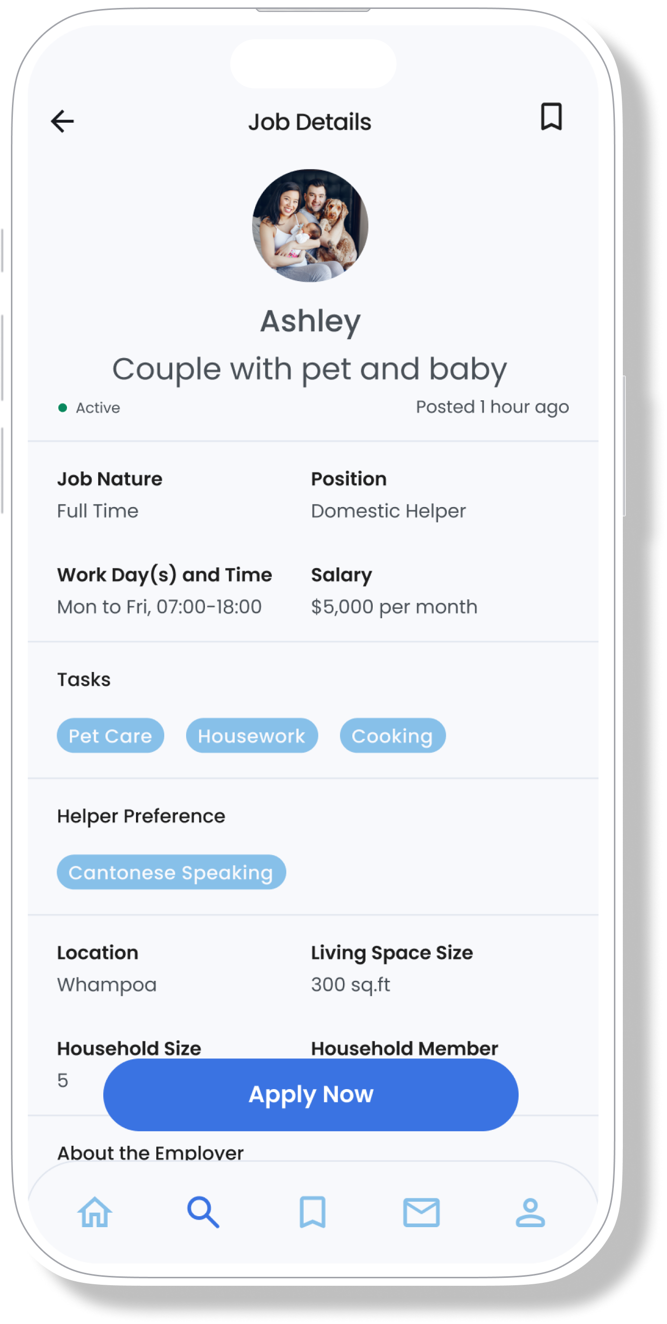 View detailed job listings and helper profiles, one-click apply feature, bookmark favourite jobs and helpers.