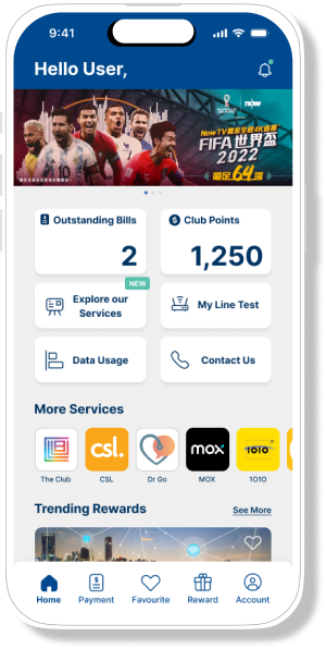 Allowing users to manage and pay for all bills that lie within HKT’s service scope.